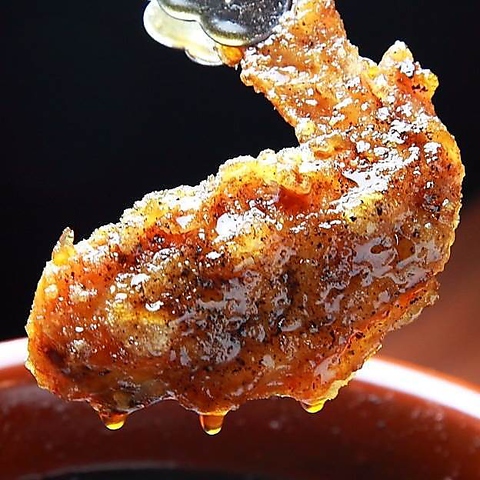 口八町といえばコレ!「炎の手羽揚げ」は当店自慢の逸品です!外はパリパリ、中はジューシーな手羽揚げを是非ご賞味下さい。