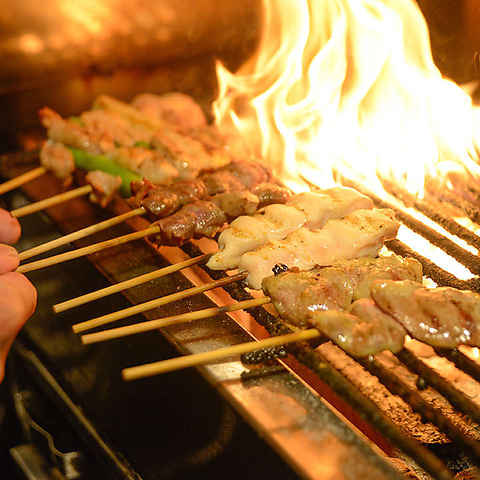 炭火で焼いて、鶏本来の旨味がギュッと凝縮された炭火焼鳥が自慢!一つ一つの素材を丁寧に、職人が真心と情熱を込めて、絶妙な火加減で仕上げております!炭の薫りと秘伝のタレが絡まって極上の旨さに!