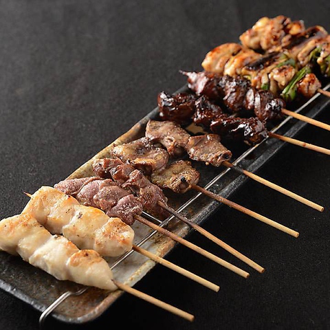 炭火で焼いて、鶏本来の旨味がギュッと凝縮された炭火焼鳥が自慢!一つ一つの素材を丁寧に、職人が真心と情熱を込めて、絶妙な火加減で仕上げております!炭の薫りと秘伝のタレが絡まって極上の旨さに。1串121円(税込)~とリーズナブルな価格でご用意!創作串も豊富にございます。