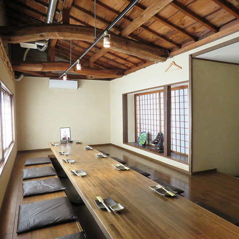 2階の広々空間は大人数はもちろん、間仕切って半個室としてお使いいただけるので少人数でも◎