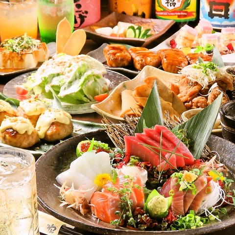 ☆期間限定☆≪燈(ともびし)コース≫忘新年会など各種ご宴会に最適◎鮮魚三種盛り合わせ/国産牛もつ鍋/名物チーズつくねなど料理9品+【生ビール含む】種類豊富な飲み放題付き。~今年最後に良い思い出作りませんか?~※コース画像はイメージの為、内容が異なります。