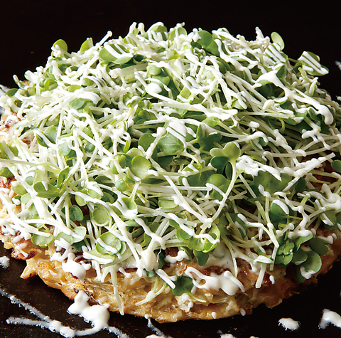 【人気No.2】自家製レモン醤油であっさり塩味。定番のお好み焼とは一線を画す、錦わらいでしか味わえない塩味のお好み焼。