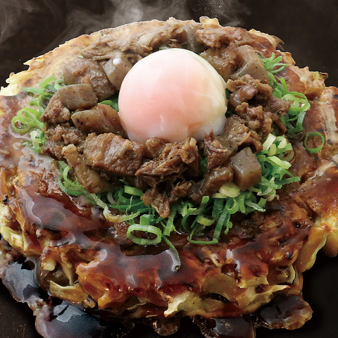【人気No.1】出汁香る、京風お好み焼。丹精込めて仕上げた一枚は、出汁とソースの香りがふわりと広がる上品な味わいです。