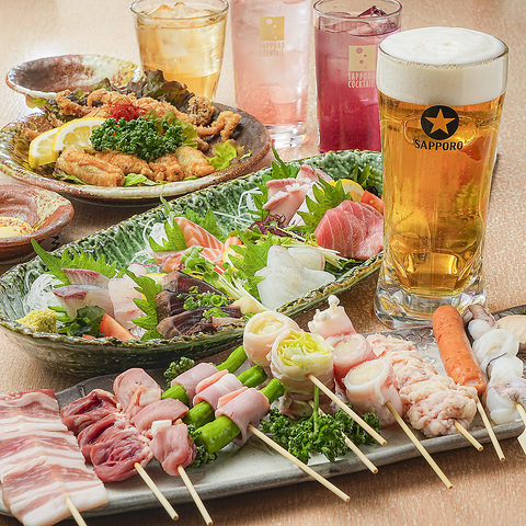 幹事様も安心!焼鳥、鉄板もの、揚げ物、サラダ、つきだし、旬の物まで楽しめる全6品に、2時間の飲み放題が付いたお得なコースです。その日に仕入れた新鮮な食材を使うため、美味しさは保証付き。会社宴会や友人との集まりに最適です。充実のメニューと飲み放題で、楽しいひとときをお過ごしください。