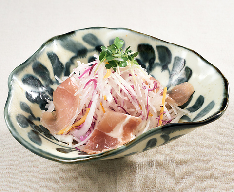 - ※「お通し」お1人様350円(税込385円)酒類をご注文のお客様に提供いたしております。※写真はイメージです。※メニュー内容や容器が一部写真と異なる場合がございます。※使用原材料の食物アレルギー物質の一覧表を店舗にご用意しております。ご希望のお客様はスタッフまでお問合わせください。