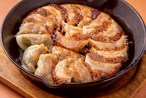 大人気の鉄鍋餃子鉄板提供だからいつでもアツアツ外カリ中はプリプリ食感の餡が決め手。