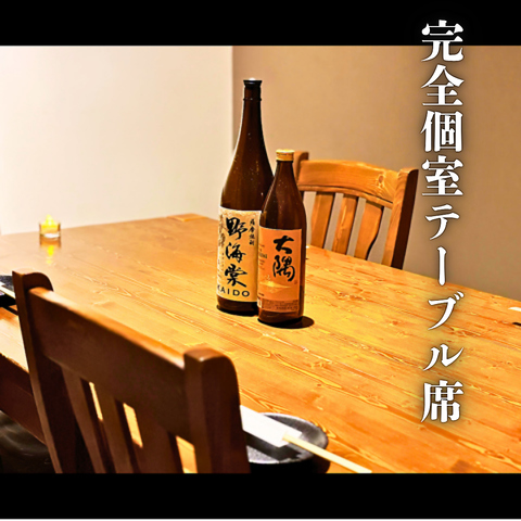 掘り炬燵個室に加え、大人数でも楽しめる完全個室のテーブル席も完備。