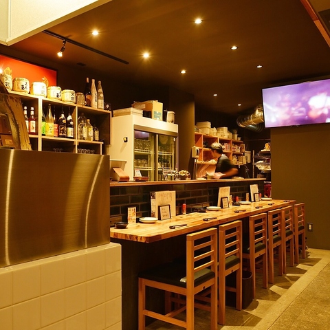 温かみのある木を使用したカウンター席完備!プライベートな飲み会、お仕事帰りのサクのみ、2軒目利用でもおすすめのお席です♪オープンキッチンのためライブ感あふれるお席です!