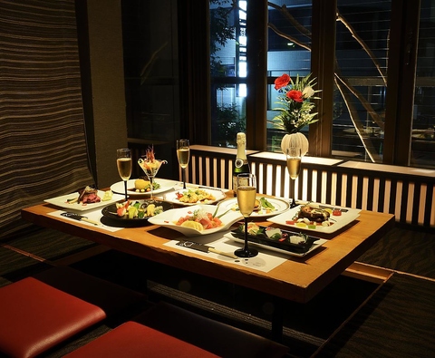 和モダンなお席、大人デートでお楽しみ頂けるようなお席等様々なシーンでお使いできる席タイプを多数ご用意致しており、お客様だけの特別な空間でしっかりとした職人が作る創作料理各種をお楽しみください。