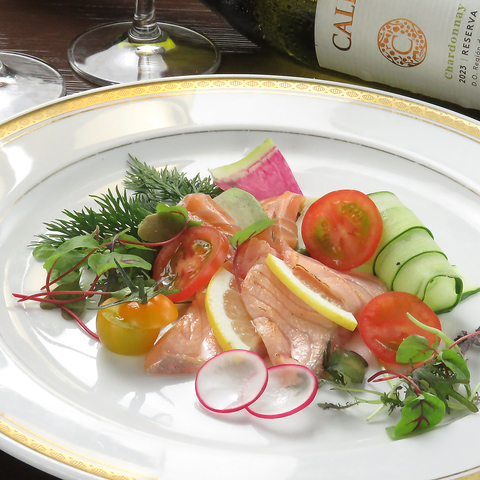 【お造り】特撰お刺身5種盛り 2,948円/毎日料理長が目利きし仕入れている、瀬戸内産の新鮮な魚介を使った『お刺身盛り合わせ』。地蛸・鮪・間八・桜鯛・鰆・サーモンなど、その日仕入れた新鮮なものを盛り合わせてご提供いたします。新鮮だからこそ味わえる、お魚の旨味と歯ごたえを存分にご堪能ください。
