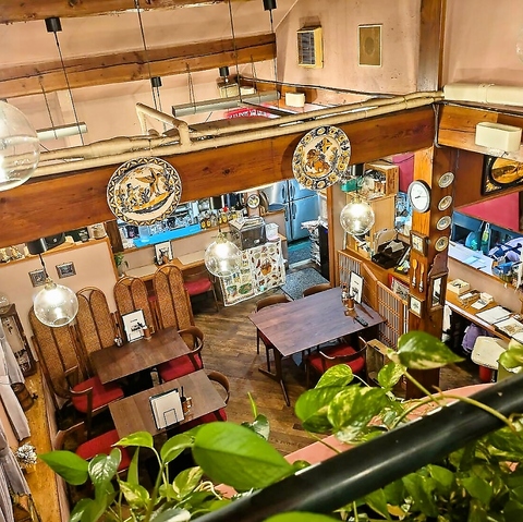 落ち着いた照明とこだわりのインテリア。かわいい絵皿がたくさん飾られていて、見ているだけでも幸せな気持ちに。