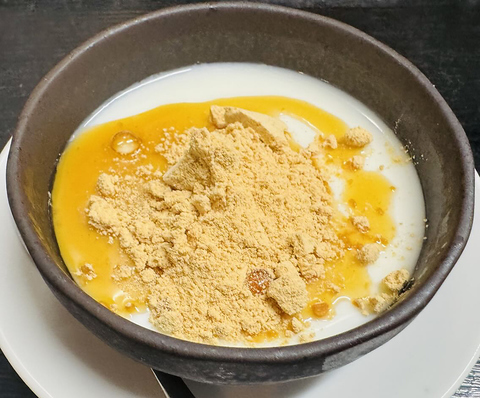 亀の甲羅、生薬で作る中国のほろ苦いゼリーを黒蜜ときな粉で