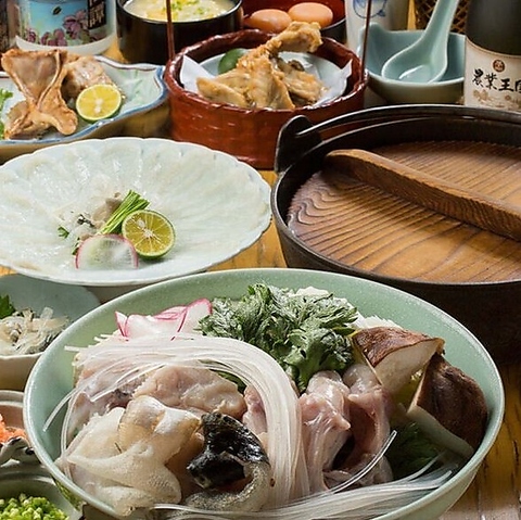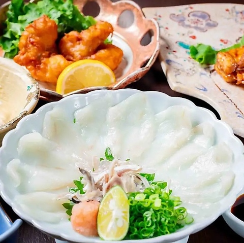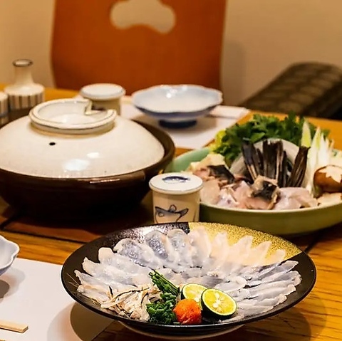 お客様満足度◎天然もののふぐを色々な調理法でご提供。ふぐ刺し、ふぐ鍋、一口ふぐザンギなど全6品。ふぐのひれ酒もお楽しみ頂ける飲み放題付き!