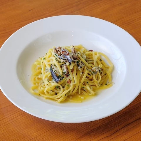 オイルサーディンの旨味をアクセントに和風のペペロンチーノに仕上げました。