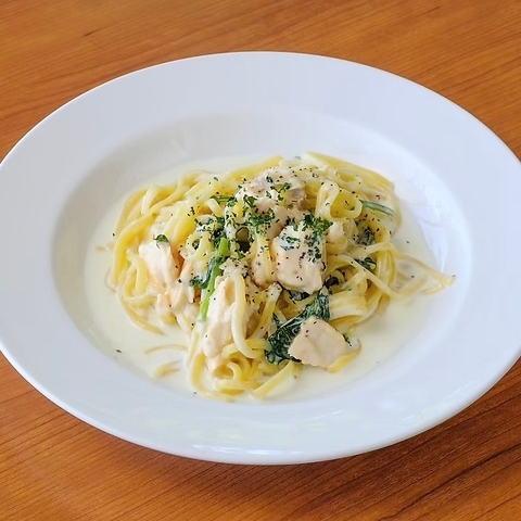 青さ海苔の香り豊かなクリームソース。柚子胡椒のさわやかな酸味をアクセントに。