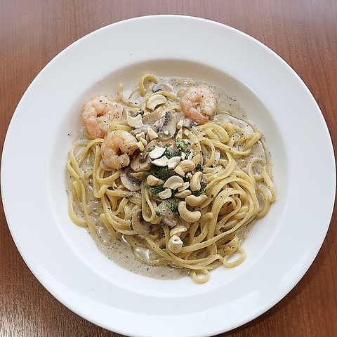ぷりぷりの海老にアールグレイを煮出した特製のクリームソース。ほのかに香る紅茶の薫りをアクセントに。