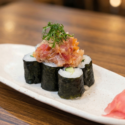 サクサクの薄い衣をまとったカツは、マグロの旨味をそのまま味わえる“レア”で仕上げました!赤身には少ししか火が通っていないので、生のまぐろの食感が残っているのもポイントです。こだわりのまぐろのレアカツは単品注文のほか、コースでも提供しております。京都駅の居酒屋で宴会をする際にはぜひご利用ください。