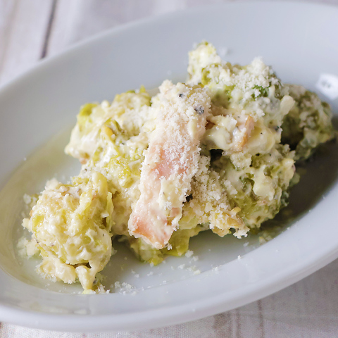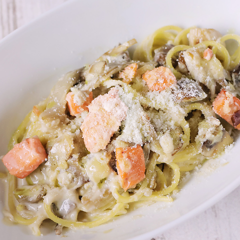 すっかり日本に定着した鮭とクリームソースのコラボレーション。味の決め手は隠し味の__茶です。