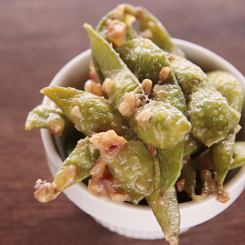 酒場の定番枝豆がシェフのマジックでガーリック風味に!