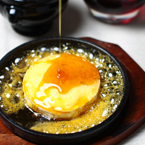 カマンベールチーズをオーブンで焼くことで外皮が香ばしく焼けて味が凝縮し、内側のとろける部分とはちみつとの相性も抜群です。