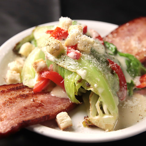 塩気のあるパンチェッタをナスで挟み込み串カツにいたしました。パンチェッタの脂をナスがすって旨み倍増の一品是非どうぞ!