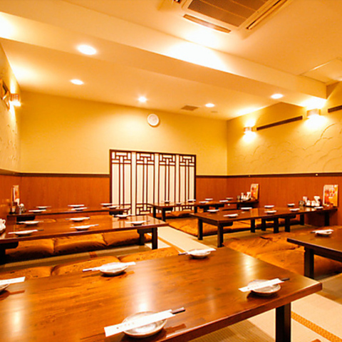 【2階席】2階のお席はお座敷42席と、掘りごたつ24席の広々とした空間。小中規模の飲み会から、最大70名様ほどの大宴会にもご利用いただけます。美味しい中華と美酒を味わいながら、ゆったりと寛ぎの時間をお過ごしください。