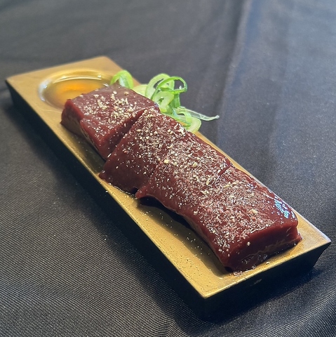 新鮮なハツの刺身を甘醤油とからしでお召し上がりいただきます。※ご提供後は出来るだけ早くお召し上がりください。※七輪の近くには長時間置かないでください。※小さなお子様や高齢の方、体調が優れない方はお控えください。