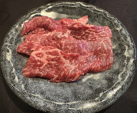 A5和牛カルビ/A5和牛薄切りカルビ/和牛ちょうどよい赤身(モモロース)/ハラミ(牛)の盛り合わせ※タレ味のみ