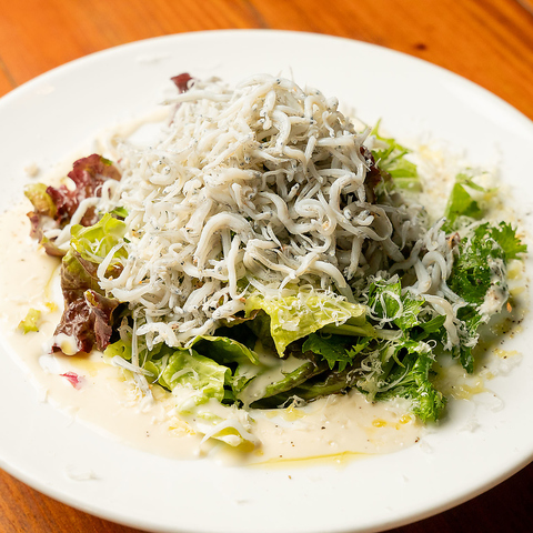 静岡県産の新鮮なしらすを、これでもか!とてんこ盛りでご提供♪『しらすのシーザーサラダ』は女性1番人気☆各種飲み放題付きコースでもお楽しみ頂ける、タイガーバル名物料理♪ピリ辛ペペロンチーノとの相性も抜群!!会社の忘年会や新年会、歓送迎会はもちろん、女子会や仲間同士の宴会で盛り上がること間違いなし♪
