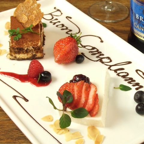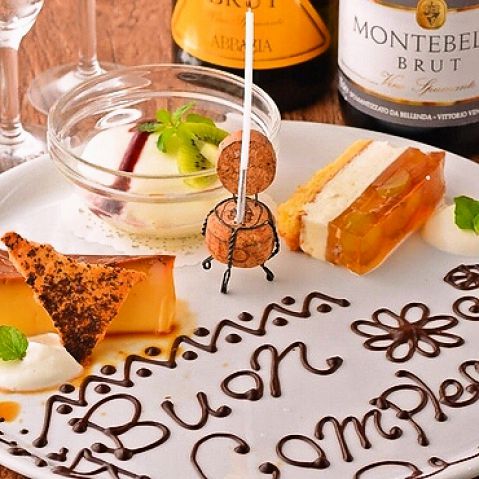 事前にご予約していただくと、『感動』のメッセージプレートをプレゼント♪誕生日祝いや記念日に、会社の歓送迎会等にご利用ください♪喜んでもらえること間違いなし♪
