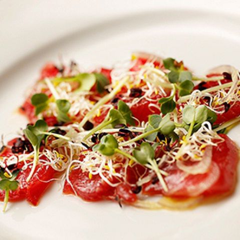 グリルしたビーフをスライスした逸品。柔らかなお肉の食感が後を引く美味しさです。