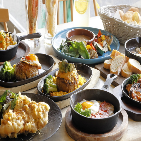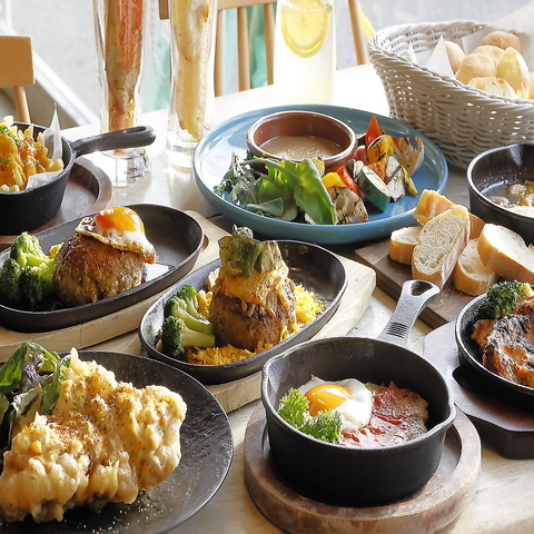 カフェならではのカジュアルさがありつつ、ディナータイムの店内はムーディーな印象。落ち着いた雰囲気の中で楽しむ、コース料理はいかがでしょうか?お得な飲み放題が付いたコースもご用意あります。