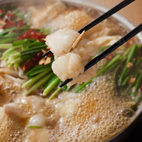 当店こだわりの逸品地鶏の王様名古屋コーチンを贅沢に鍋でお召し上がり頂けます。コーチンならではの歯ごたえと滋味あふれる上質な鶏出汁。鮮な国産牛にこだわった究極のもつ鍋もおすすめしたい逸品です。