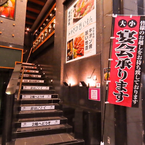 | 貸切 | 50名様×1 | 仙台駅前アーケード内で、2次会3次会にもおすすめ。二次会コースは生ビールもOK120分飲み放題付で2280円!!宴会・飲み会をとことんまで愉しむ!開放的かつ居心地の良いお座敷席を多数ご用意しております!大人数向けの宴会席もご用意しております。お気軽にお問合せ下さい。 |