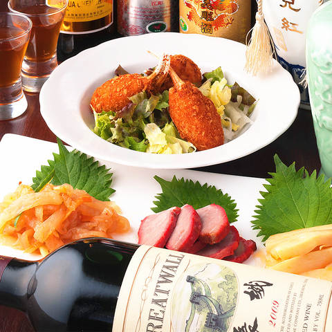 特選前菜3品から名物肉餃子、北京ダック、毛沢東スペアリブ、海老料理2品まで堪能。贅沢2.5時間飲み放題付きの極上四川グルメコース。