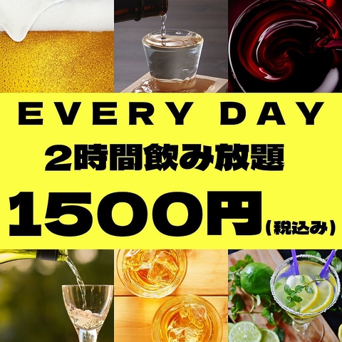 生ビールやハイボール、カクテルや梅酒なども入った種類豊富な飲み放題が2時間飲み放題で¥1500(税込)!