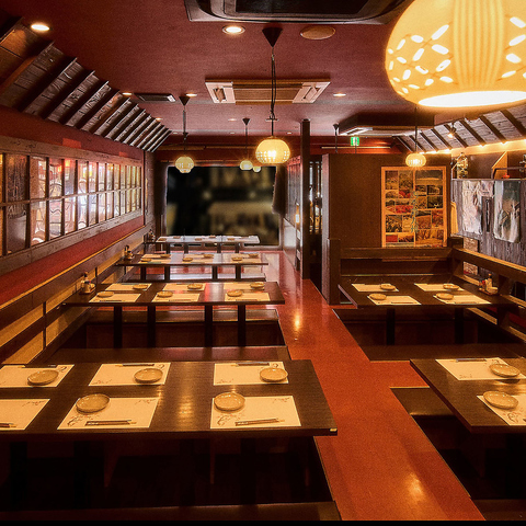 【貸切最大35名~50名様(週末は38名~応相談)】通路も広いので、席の移動もらくらく!ゆっくり足が伸ばせる堀こたつ席となっております。食べ飲み放題は3980円~3時間飲み放題付コースもご用意しておりますので、ご宴会のご予算・時間などもお気軽にお問い合わせくださいませ!