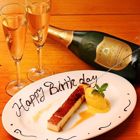 クーポンご利用で、誕生日・記念日などにメッセージプレートをサプライズでご用意♪※前日まで要予約