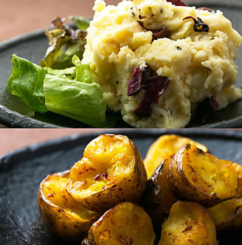 当店では、越冬熟成で糖度を高めた2種類のじゃがいもを使用しています◎「インカのめざめ」は栗やさつまいものような甘みとホクホク食感が楽しめるフライドポテトに、希少な「ピルカ芋」は熟成による自然な甘さとコクが際立つなめらかなポテトサラダに仕上げました。素材の旨みを存分に味わえる、特別なお芋料理をご堪能ください!