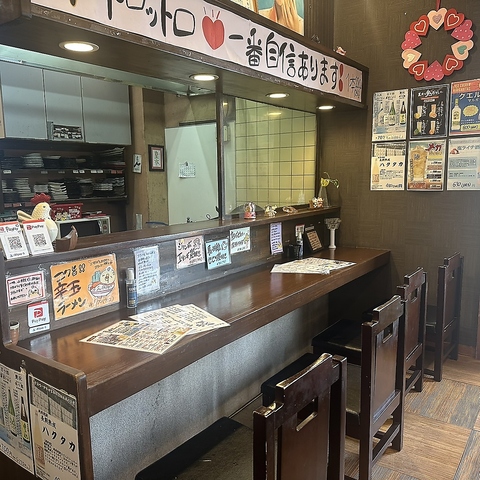お仕事帰りやふらっと一杯飲みたい時に最適なカウンター席が4席ございます◎お一人様でも気兼ねなくご来店いただける温かい雰囲気で、焼鳥と美味しいお酒をお楽しみいただけます。デートなどにもご利用可能な、居心地の良い空間で、日頃の疲れを癒してくださいね♪