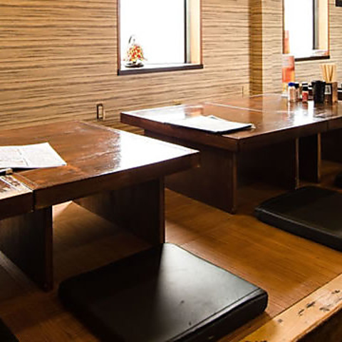 お座敷席は、6名様がけのお席を1枠ご用意しております。会社の同僚とのちょっとした集まりや飲み会などに、ぜひご利用ください。