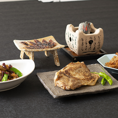 地鶏やサーロインステーキなどの炭火焼料理や創作料理を地酒や日本国内のお酒とともにお楽しみいただけます。