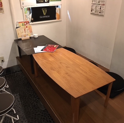 小上がりのテーブル席は少人数での語り飲みに最適!