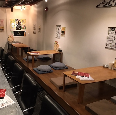 店内はおひとり様も大歓迎のカウンター席/少人数の飲み会にぴったりの小上がり席(4名×3卓)ございます!