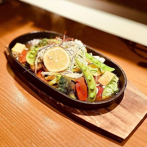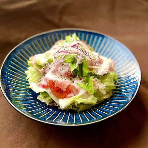 数々のお店にオマージュされた、当店オリジナルの菜園風サラダと生ハムのピッツァ。オーダーを受けてから丁寧に一枚ずつ焼き上げます。何種類ものソースをブレンドした、オリジナルの一枚を是非ご賞味ください。
