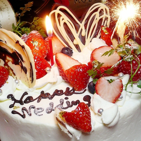誕生日や記念日などの大切な日に心に残る感動サプライズ!専任パティシエ特製ホールケーキ付コース3000円~