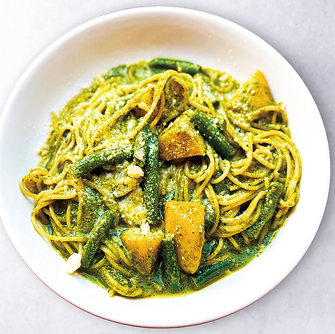 /爽やかなバジル香る、ジェノベーゼ。ほくほくのじゃがいもといんげんの食感がアクセント。