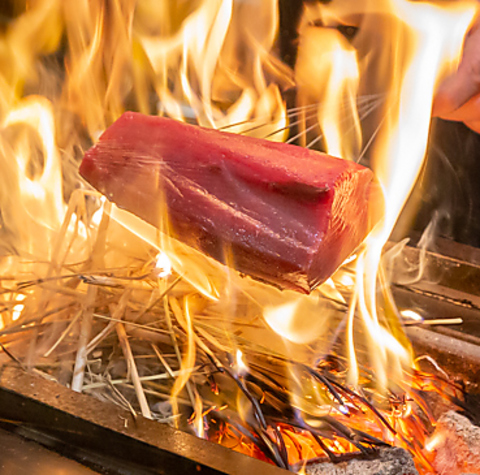 天然の一本釣りかつおをご注文いただいてから『わら焼き』で焼き上げます。パリッとした皮の食感と、とろける身の旨味を堪能してください。