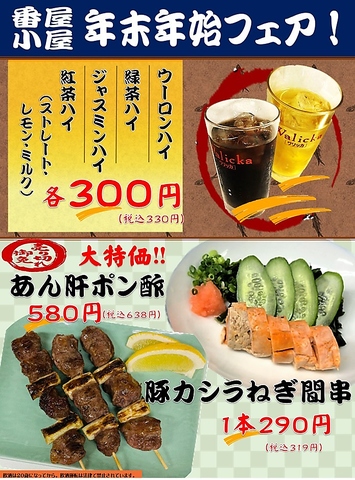 年末年始はお茶ハイがお得☆旬なあん肝ポン酢は引き続き特別価格!豚カシラねぎ間串はフェアに初登場♪