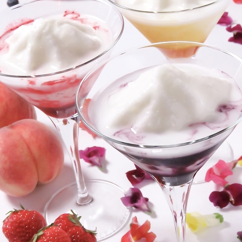 オルガの新定番!1、2年後には新基準!!フルーツピューレとヨーグルトで作る、フローズンカクテル、ビジュアルも味わいもあなたを虜にする。【ブルーベリー/マンゴー/パッションフルーツ/ピーチ/ストロベリー/キャラメル】